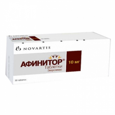 Рекомендуемая доза Афинитора® составляет 10 мг 1 раз в сутки. При развитии тяжелых и/или труднопереносимых нежелательных явлений следует снизить дозу Афинитора® до 5 мг/сут и/или временно прекратить терапию препаратом.
